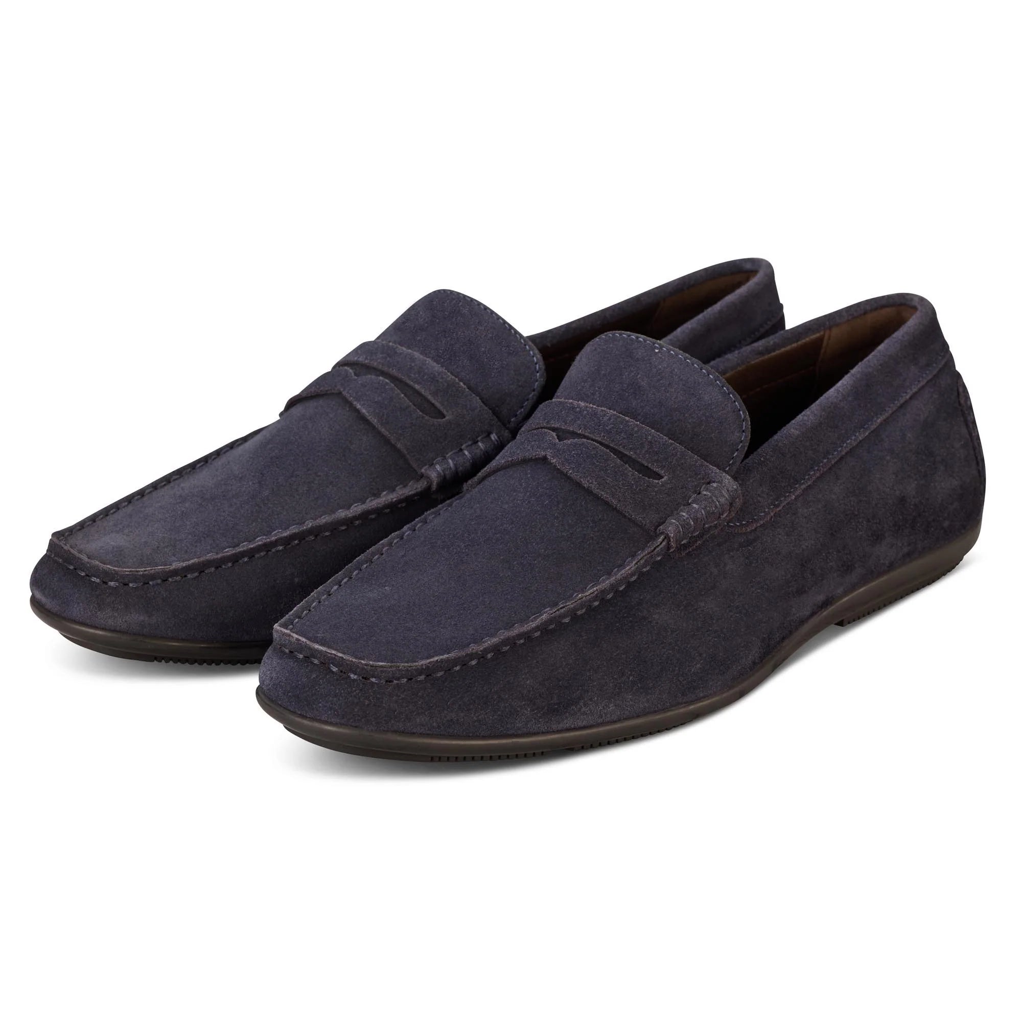 Material & Design: Expertly crafted from calfskin suede, the McQueen features a traditional penny loafer silhouette with a relaxed moccasin construction. Its streamlined, easy-wearing profile blends classic charm with effortless elegance.