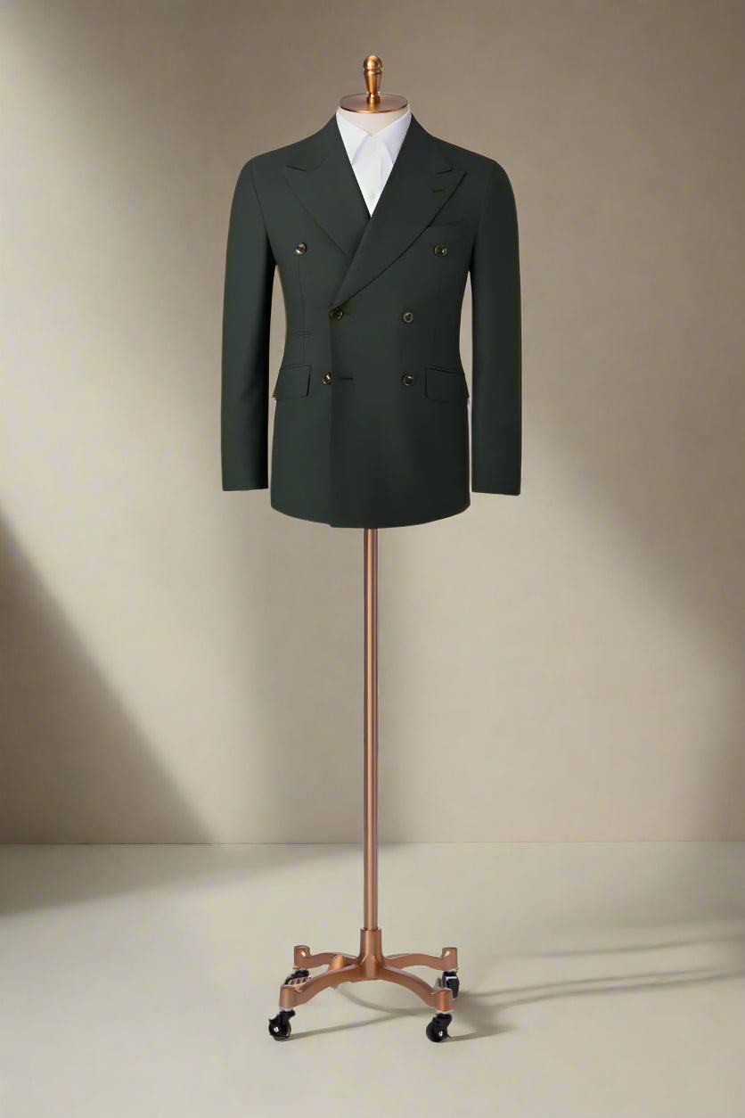 Expertly tailored to your precise measurements, this Army Green double breasted jacket embodies sophisticated masculinity. The distinguished silhouette features traditional peak lapels and structured shoulders for a commanding presence. Crafted with meticulous attention to detail, this bespoke garment offers superior fit and comfort while maintaining an elegant drape that elevates both formal attire and smart-casual ensembles.