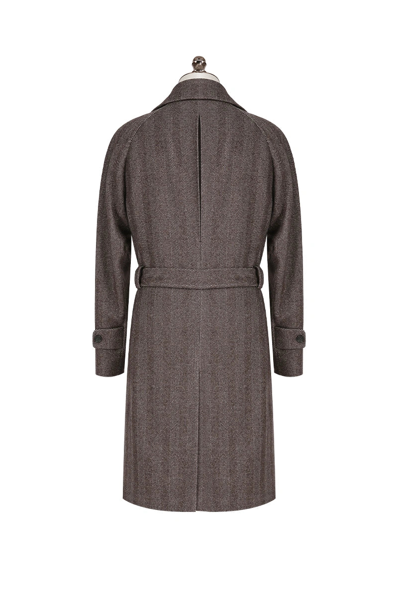 Command attention with this brown tweed overcoat, distinguished by its elegant belted waist and refined herringbone weave. Constructed to your exact specifications, this made-to-measure garment exemplifies bespoke tailoring at its finest. The strategic belt detail creates a polished silhouette whilst the textured tweed fabric adds visual interest and enduring appeal. Versatile enough for professional settings yet refined for evening occasions, this piece becomes a cornerstone of any sophisticated wardrobe. Experience the unparalleled comfort and confidence of a coat designed exclusively for your frame.