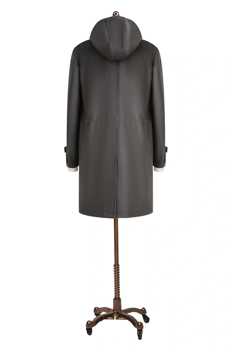 Redefine contemporary elegance with this charcoal hooded trench coat, expertly tailored to your exact specifications. The functional hood adds modern versatility whilst maintaining the refined aesthetic of this iconic silhouette. Rendered in sophisticated charcoal, this made-to-measure piece offers effortless styling across seasons and occasions. Superior construction ensures durability and comfort, whilst the bespoke fit guarantees a polished appearance. Whether navigating urban landscapes or attending formal events, this trench coat delivers understated sophistication. Invest in a garment that seamlessly merges practical design with timeless elegance, crafted exclusively for you.