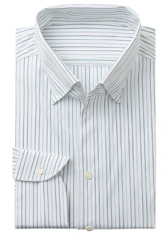 Crafted from premium cotton, this men's green stripe shirt offers a refined blend of comfort and style. Made to measure for a precise fit, it ensures a tailored silhouette that complements your frame. The subtle green stripes add a sophisticated touch, making it ideal for both professional and casual settings. Experience the perfect balance of quality fabric and expert tailoring with this custom shirt.