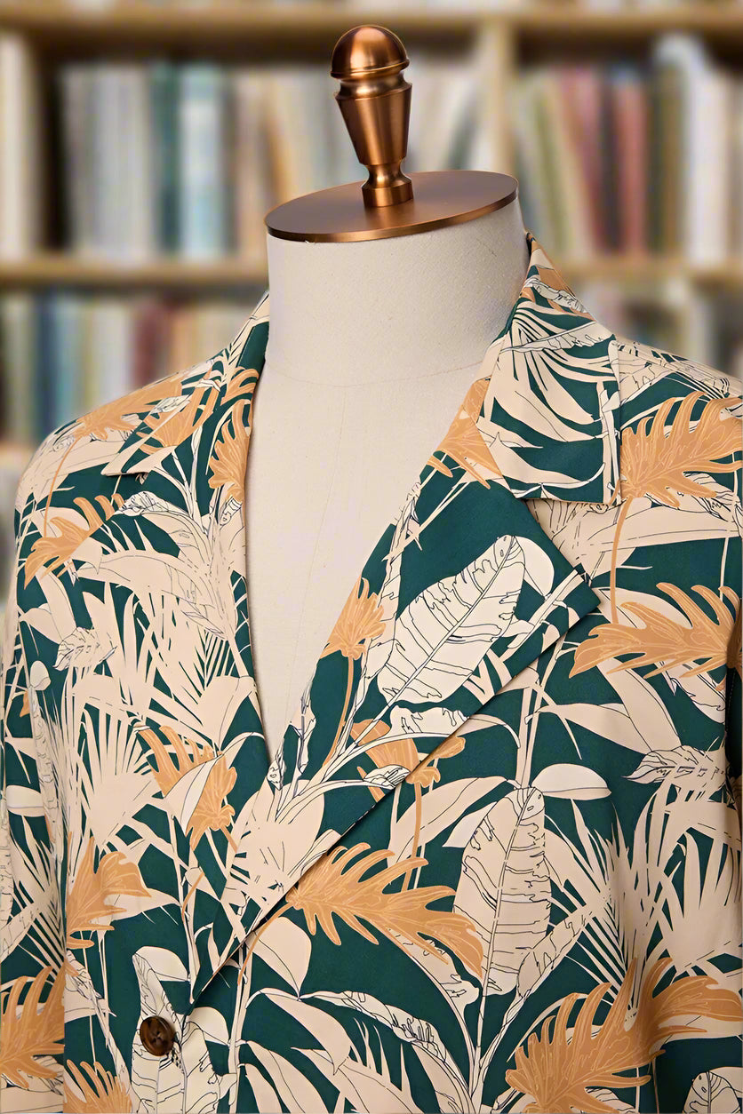 This men's printed single-breasted shirt features a sophisticated suit collar, expertly tailored to your measurements for a flawless fit. Combining distinctive patterns with precise craftsmanship, it offers a refined yet contemporary style ideal for formal and business occasions. The made-to-measure design ensures comfort and sharpness, elevating your wardrobe with a unique, personalized touch.