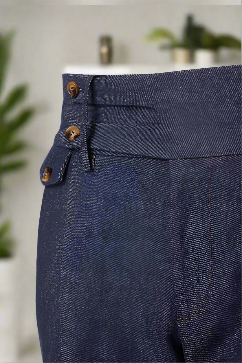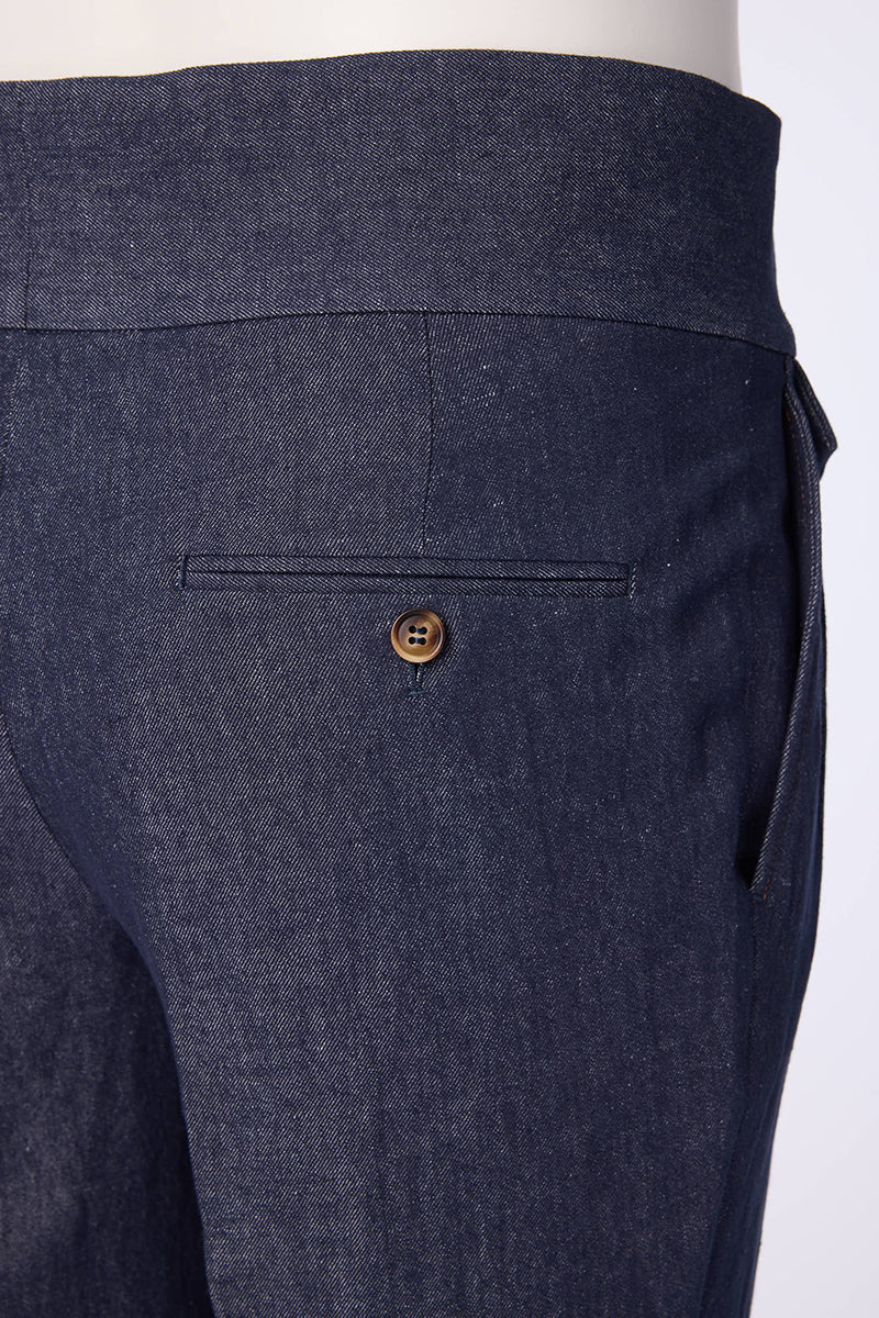 Crafted from breathable linen, these men's navy casual trousers offer a tailored fit that combines comfort with refined style. Designed to measure, they ensure a precise silhouette ideal for warm weather or relaxed occasions. The navy hue provides versatile pairing options, making these trousers a sophisticated addition to any wardrobe.