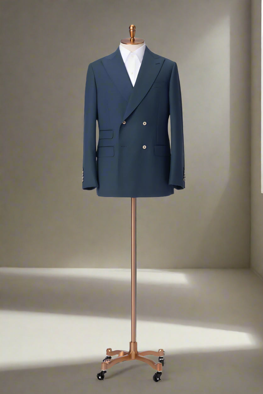 A perfect fit, this men's Navy color double breasted Suit, stylish and comfortable. Made to measure using high-quality 100% wool, it offers a unique blend of elegance and functionality, making it an ideal choice for any formal event. Stand out from the crowd with this expertly crafted suit.