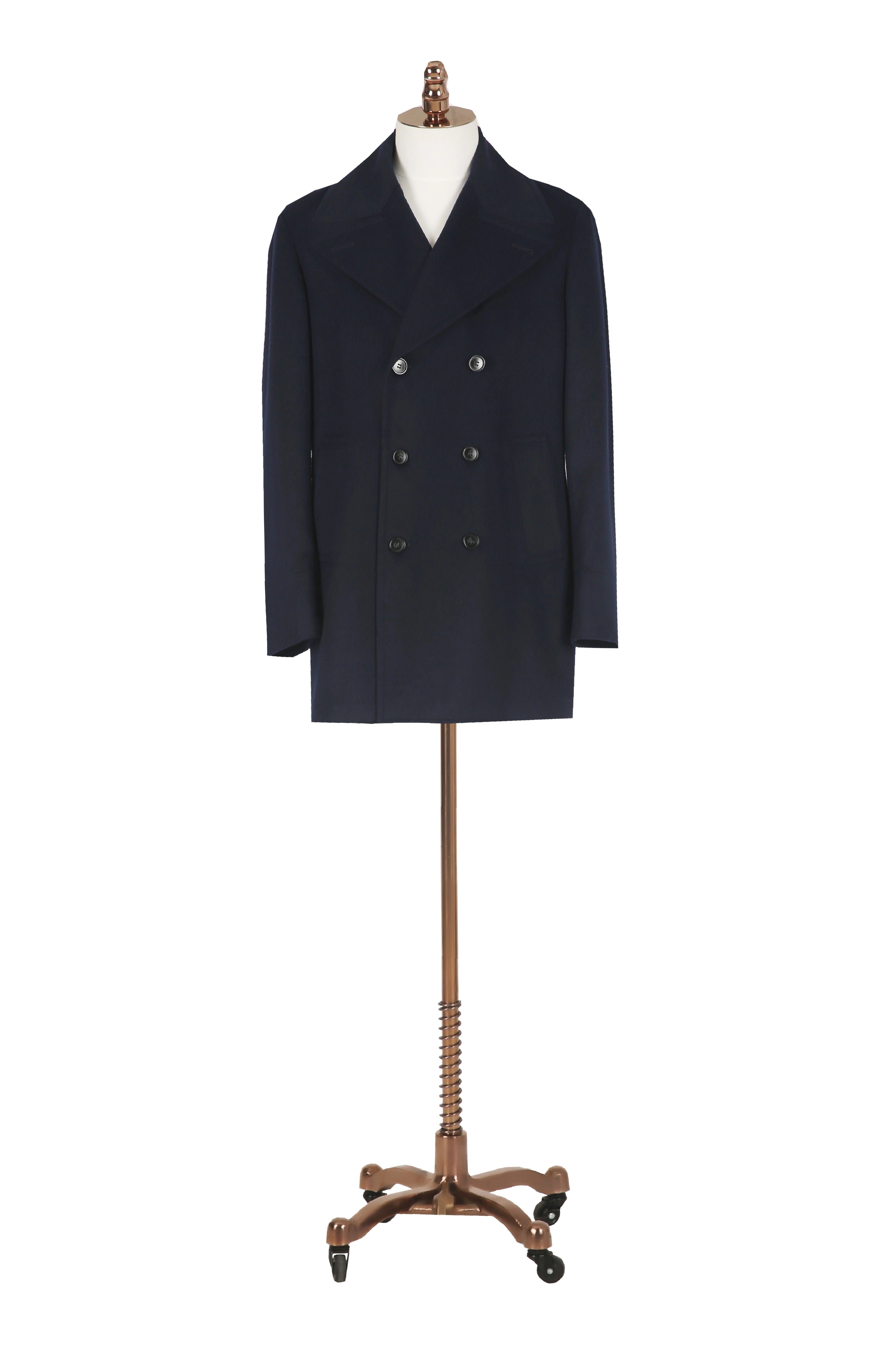 This men's navy double-breasted style trench coat is meticulously made to measure, offering a tailored fit that complements your frame. Its classic double-breasted design pairs timeless style with modern elegance, while the rich navy color adds versatility to your wardrobe. Crafted from premium materials, the coat balances durability with comfort, making it an ideal choice for both professional and refined casual occasions. The custom tailoring ensures a sharp silhouette, providing a polished and confident appearance.