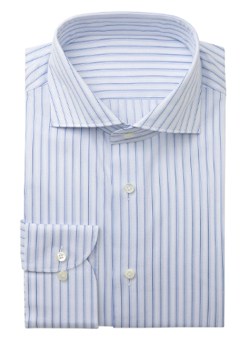 Crafted from premium cotton, this men's blue stripe shirt offers a tailored fit that enhances your silhouette with precision. Designed for comfort and style, its sleek pattern suits both professional and casual settings. Made to measure, it ensures a perfect fit tailored to your exact dimensions, combining classic elegance with modern sophistication.